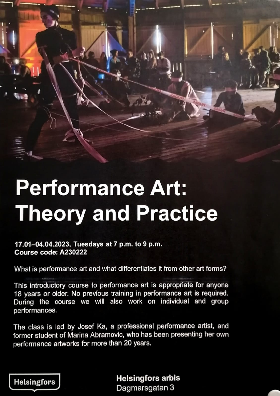 PERFORMANCE ART: THEORY AND PRACTICE // CLASS BY JOSEF KA // ARBIS WINTER-SPRING 2023 // HELSINKI